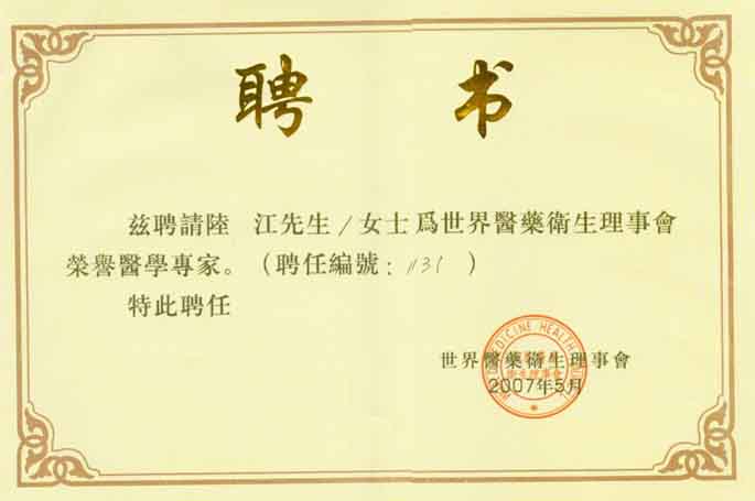 獲中國醫學專科專病優秀專家華佗獎章